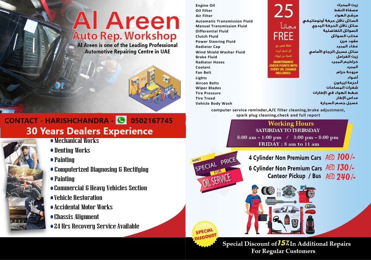 At AI AREEN,Auto.rep.Workshop, we understand that your vehicle is more than just a mode of transportation; it's an essential part of your daily life. With a passion for automobiles and a commitment to excellence, we have been serving for 35+ years, providing top-notch car servicing and maintenance solutions